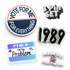 1989 pin is: 1.5'' x 1'' Acrylic with push pin rubber clutch