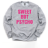 Sports gray crew sweatshirt with bright pink design: get cozy with our Sports Gray sweatshirt adorned with a vibrant bright pink design, that says Sweet But Psycho.